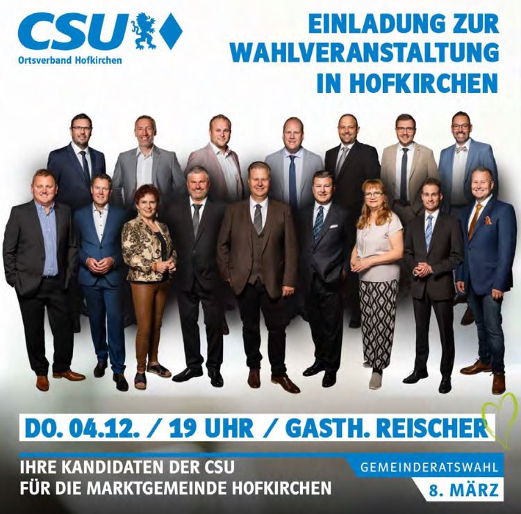 Liebe Bürgerinnen und Bürger aus Hofkirchen und Garham, auch heuer laden wir euch alle wieder recht herzlich